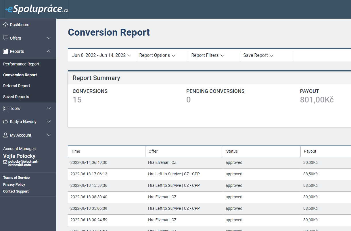 Ke každé propagaci byste jistě rádi viděli i podrobné výsledky, to vše naleznete v záložce „Reports“ a následně zvolíte „Conversion Report“
