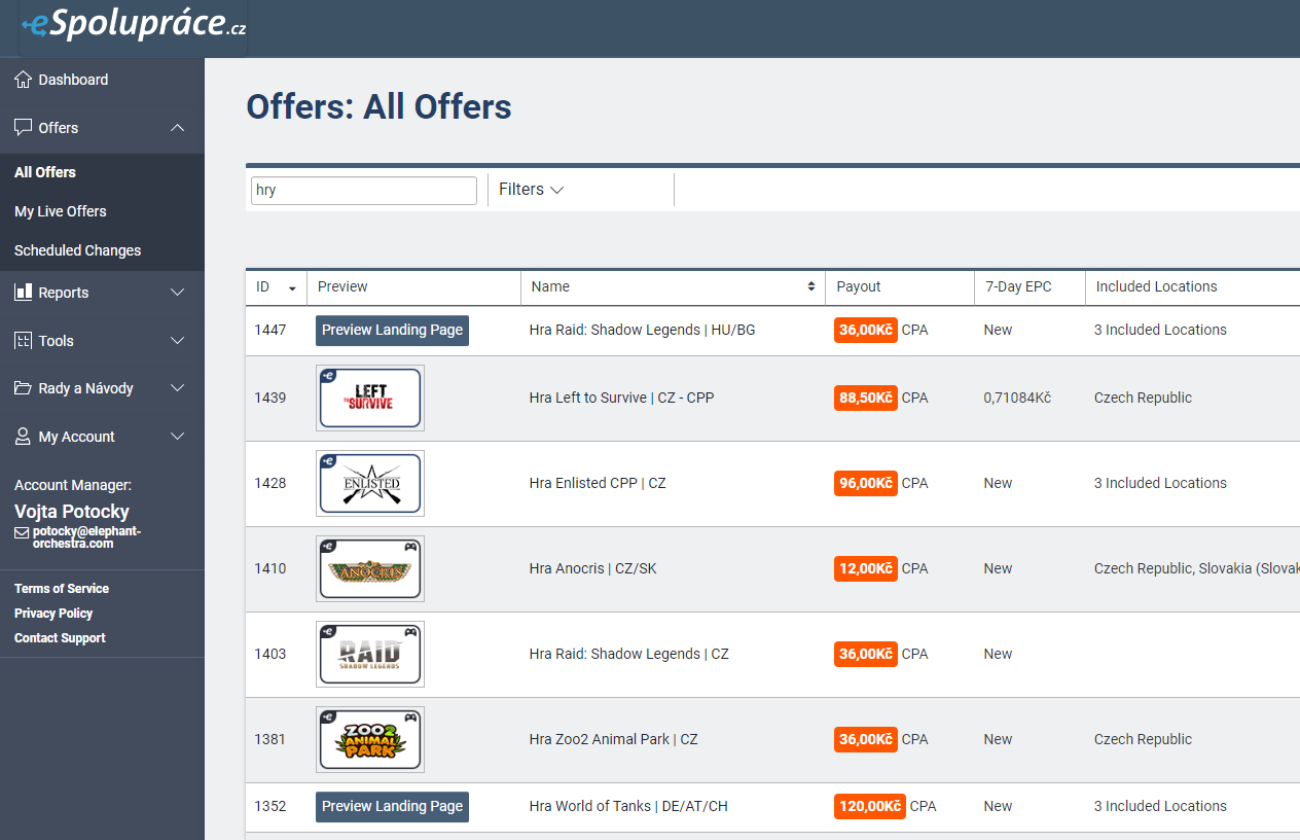 Nyní se nacházíte na přehledu herních kampaní, které můžete propagovat a získávat tak provizi z každé registrace, kterou přes Váš unikátní odkaz získáte.