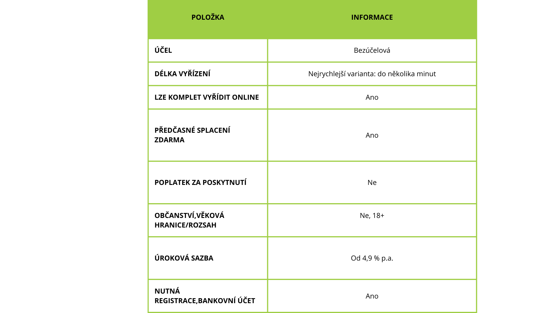Předčasné splacení kdykoli a zadarmo, sjednání a vedení půjčky máte také zdarma. Snadno a na pár kliknutí tak klient získá půjčku, která letos opět zvítězila v Indexu odpovědného úvěrování Člověka v tísni.