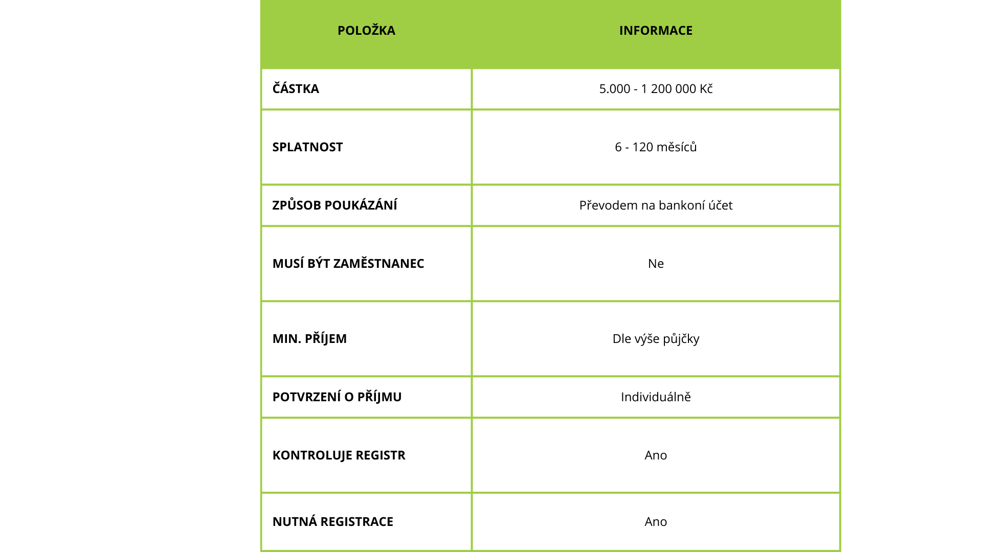 Výše půjčky 5 000 Kč až 1 200 000 Kč